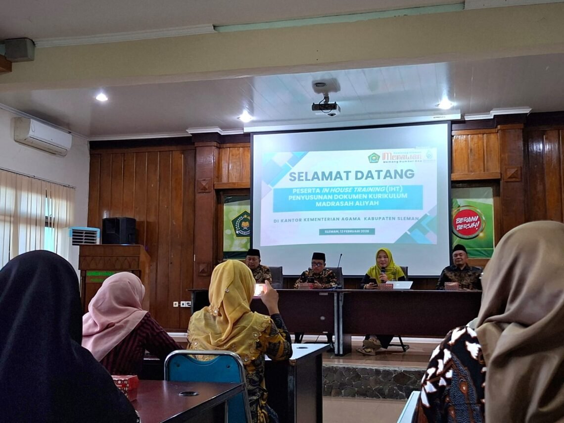 Sleman (MAN 1 Sleman) — MAN 1 Sleman mengikuti kegiatan In House Training (IHT) Penyusunan Dokumen Kurikulum Madrasah Aliyah yang diselenggarakan oleh Kementerian Agama Kabupaten Sleman pada Kamis (12/02). Kegiatan berlangsung di Aula Lantai 3 Kantor Kementerian Agama Kabupaten Sleman. MAN 1 Sleman diwakili oleh Staf Kurikulum, Listia Palupi Wisnu Aji, S.Pd. Keikutsertaan dalam kegiatan ini menjadi bentuk komitmen madrasah dalam meningkatkan kualitas penyusunan dokumen kurikulum yang selaras dengan kebijakan Kementerian Agama. Kegiatan diawali dengan sambutan dari Plt. Kepala Seksi Pendidikan Madrasah Kemenag Sleman, Tri Wahyuni, S.Pd. Dalam sambutan tersebut disampaikan bahwa penyusunan dokumen kurikulum harus dilakukan secara sistematis, kontekstual, dan responsif terhadap dinamika pendidikan. “Dokumen kurikulum madrasah harus mampu…