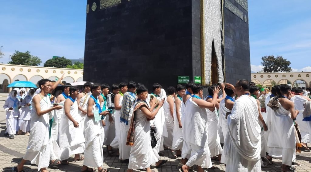 Sesampainya di lokasi, para peserta mengikuti seluruh rangkaian prosesi manasik haji secara lengkap, mulai dari simulasi wukuf di Arafah, mabit di Muzdalifah dan Mina, melempar jumrah, thawaf mengelilingi Ka’bah, sa’i antara Shafa dan Marwah, hingga tahallul. Doa-doa dalam setiap tahapan ibadah pun dilantunkan oleh para siswa dengan penuh khidmat.