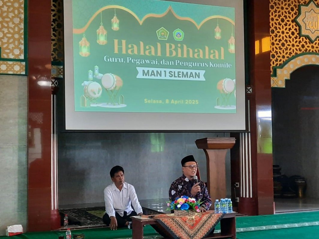 Sleman (MAN 1 Sleman) – Dalam suasana syawal yang penuh berkah, keluarga besar MAN 1 Sleman menyelenggarakan kegiatan Halal Bihalal yang diikuti oleh seluruh guru, pegawai, dan pengurus komite, Selasa (08/04/2025). Bertempat di Masjid Al Himmah MAN 1 Sleman, kegiatan ini menjadi momen penting untuk mempererat silaturahmi serta menyatukan semangat kebersamaan dalam membangun madrasah yang lebih baik. Acara dimulai dengan pembukaan dan pembacaan ayat suci Al-Qur’an, kemudian dilanjutkan dengan sambutan dari kepala madrasah dan perwakilan komite. Dalam sambutannya, Drs. Parwanto, M.A., selaku Plt Ketua Komite MAN 1 Sleman, menekankan pentingnya kolaborasi antar seluruh elemen madrasah. “Tidak ada yang paling berperan, semuanya adalah sapu lidi. Bersama-sama, kita berjuang sekuat tenaga untuk…