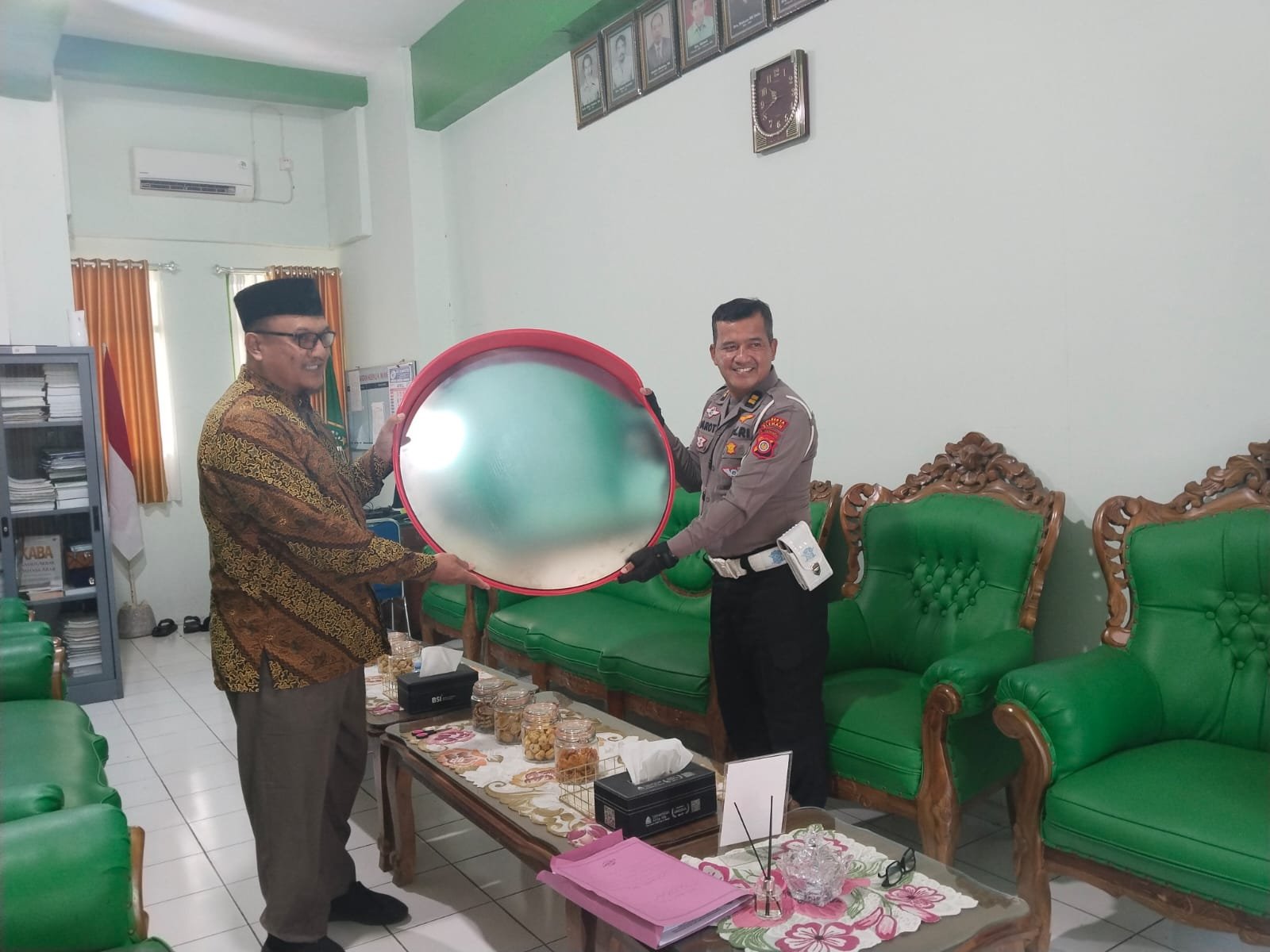 MAN 1 Sleman News — Dalam upaya meningkatkan pembinaan tata tertib lalu lintas di lingkungan madrasah, Polresta Sleman menyerahkan bantuan berupa cermin cembung kepada MAN 1 Sleman. Penyerahan tersebut merupakan bagian dari bentuk kerja sama antara pihak kepolisian dan madrasah dalam menciptakan lingkungan yang aman dan tertib bagi seluruh warga sekolah.