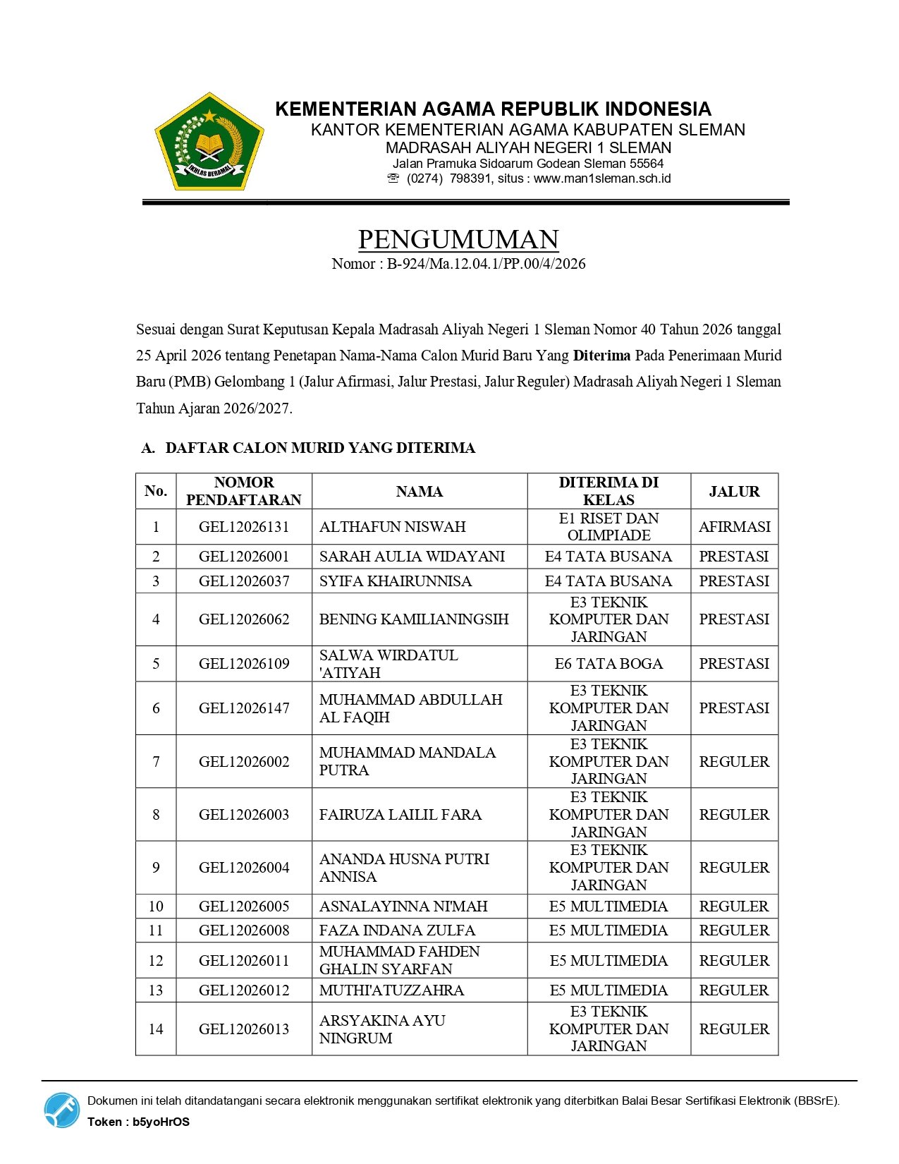 • 25 Siswa MAN 1 Sleman Lolos SNBP 2026