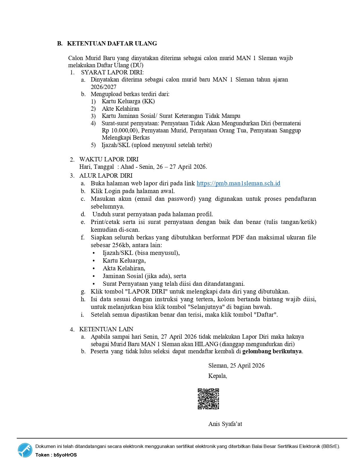 DONLOAD FILE : Pengumuman PMB Gelombang 1 Tahun Ajaran 2026/2027