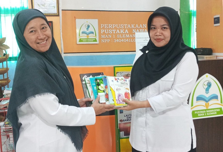 Sleman (MAN 1 Sleman) – Perpustakaan Pustaka Nawasena MAN 1 Sleman terus menunjukkan komitmennya dalam berbenah dan berkembang, termasuk dalam menyambut tahun ajaran baru 2025/2026. Tidak hanya menjadi pusat informasi, perpustakaan ini kini juga menjadi ruang inspiratif bagi seluruh warga madrasah untuk belajar dan tumbuh. Sebagai bagian dari semangat pembaruan di awal tahun ajaran, pada hari pertama masuk sekolah, Senin (14/07/2025), perpustakaan menerima hibah delapan judul buku dari Malinda Kusumawati, S.Pd., yang merupakan guru Biologi dan Riset di MAN 1 Sleman. Kepala Perpustakaan Pustaka Nawasena, Nur Fatimah, S.Pd., menyampaikan apresiasinya atas sumbangan tersebut. “Terima kasih Bu Malinda, semoga hibah buku di awal tahun ajaran ini dapat menambah antusias warga MAN…